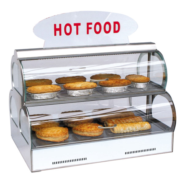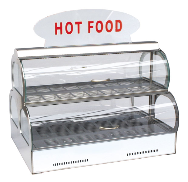 Современный дизайн витрины для горячих блюд помогает увеличить продажи.