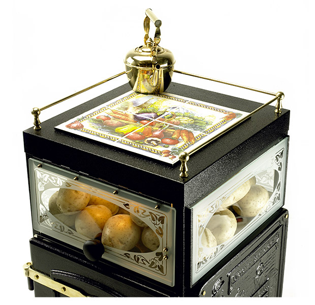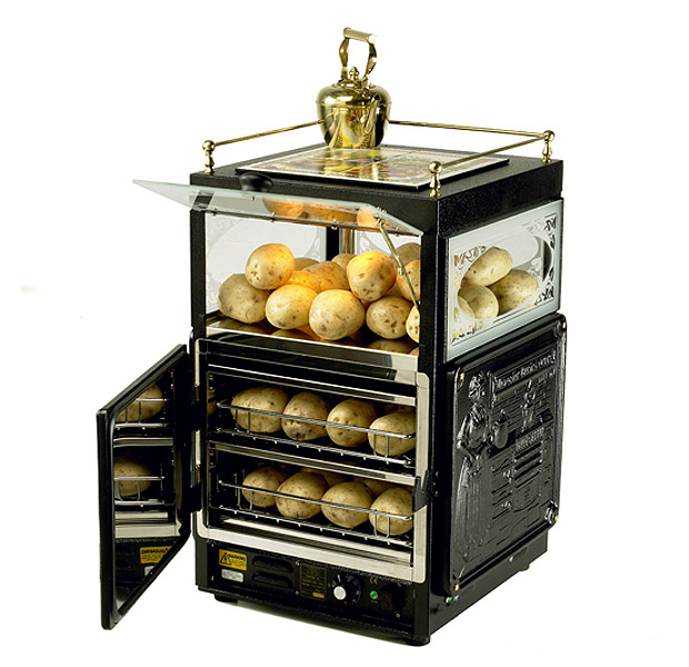 Наверное самая привлекательная печь для картофеля из имеющихся в продаже. Данная печь предлагает эффективное использование пространства, высокую степень стимулирования торговли и традиционный дизайн. Сплошная отливка, покрытая черной эмалью, выполнена традиционным способом, как это делалось более 200 лет назад.